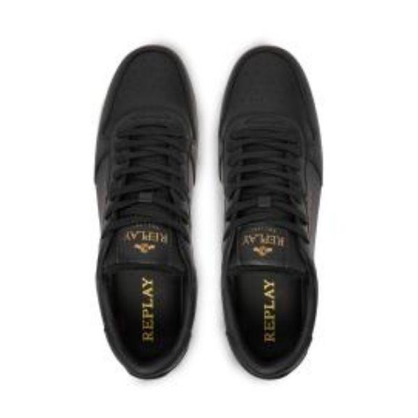 Crne Replay patike modernog dizajna sa zlatnim logo detaljem pružaju spoj elegancije i urbanog stila. Izrađene od kvalitetnog materijala, sa čvrstim i udobnim đonom koji obezbeđuje stabilnost pri svakom koraku.