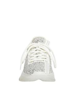 Steve Madden Maxima-R plitke bele patike prekrivene srebrnim cirkonima. Chunky đon visine 4cm.