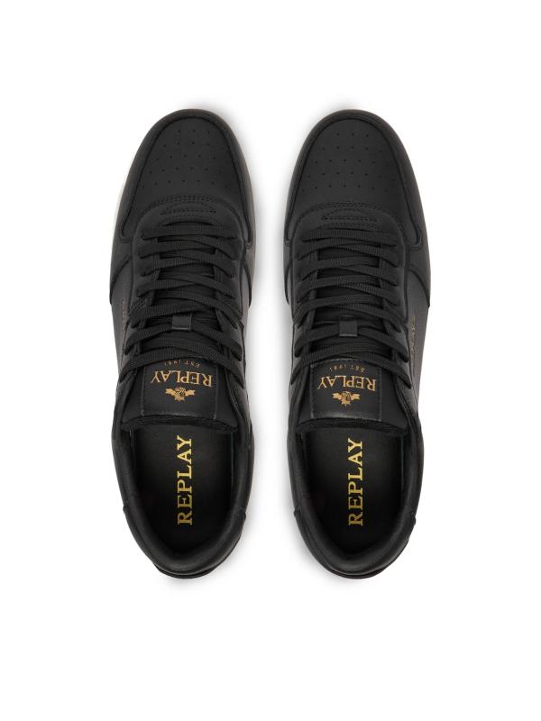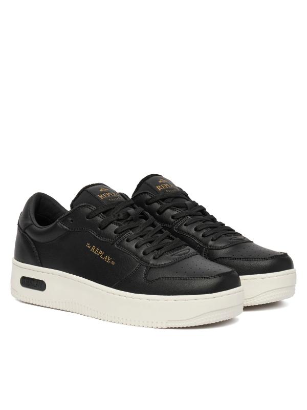 Crne Replay patike modernog dizajna sa zlatnim logo detaljem pružaju spoj elegancije i urbanog stila. Izrađene od kvalitetnog materijala, sa čvrstim i udobnim đonom koji obezbeđuje stabilnost pri svakom koraku.