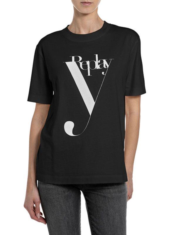 Replay ženska majica sa printom. Kratki rukavi i okrugli izrez. Ravni kroj. Pamuk. Crna boja.