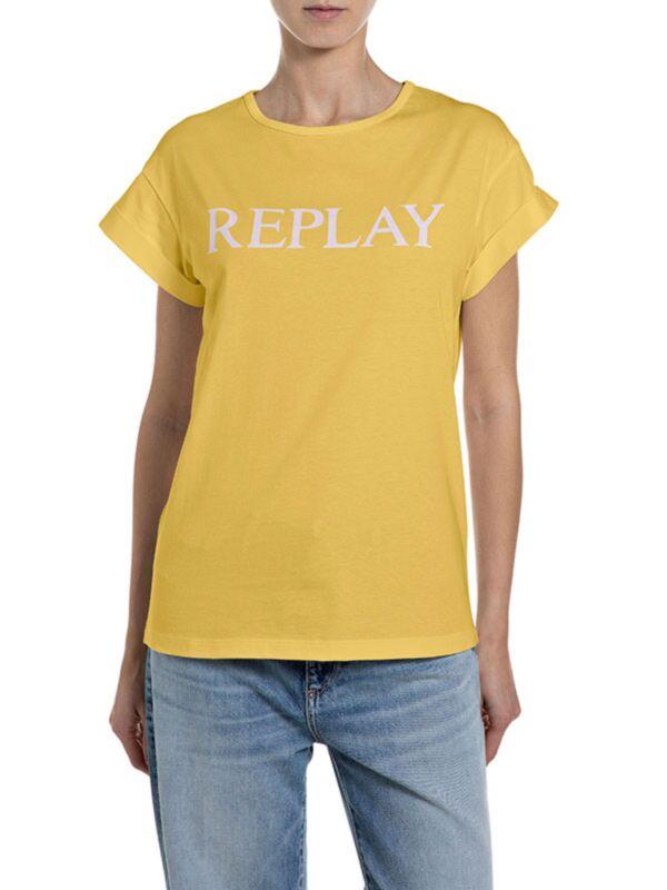 Replay ženska logo majica kratkih rukava. Žuta boja. Okrugli izrez. Pamuk.